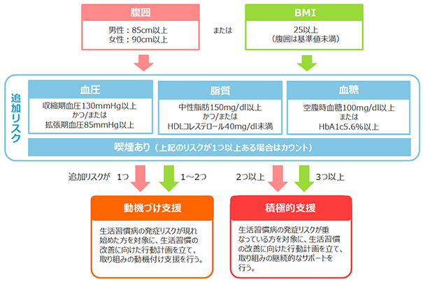 特定健診の結果、メタボリックシンドロームのリスクが高い方が特定保健指導の対象となります。