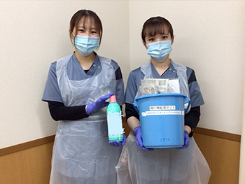 病棟勉強会で吐物処理の方法について学びました。(2025年9月)